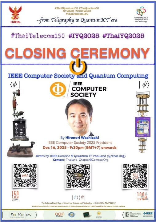 On behalf of the IEEE Computer Society, Prof. Washizaki has been delighted to join the celebration of the 100th World & 50th Thai Quantum S&T Anniversary, organized by the IEEE Thailand Section Quantum IT group, by providing his remarks and talk, referring to the IEEE CS’s programs and activities in quantum computing.
